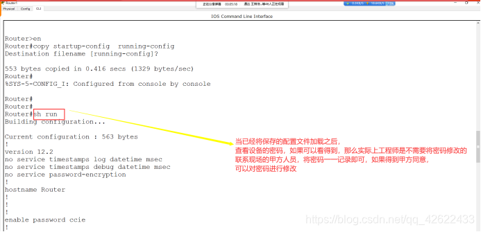 2)show running-config ///查看正在运行的配置 sh run 没保存也能看到