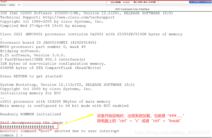 重启路由器 进入console,使用ctrl+c终端系统加载