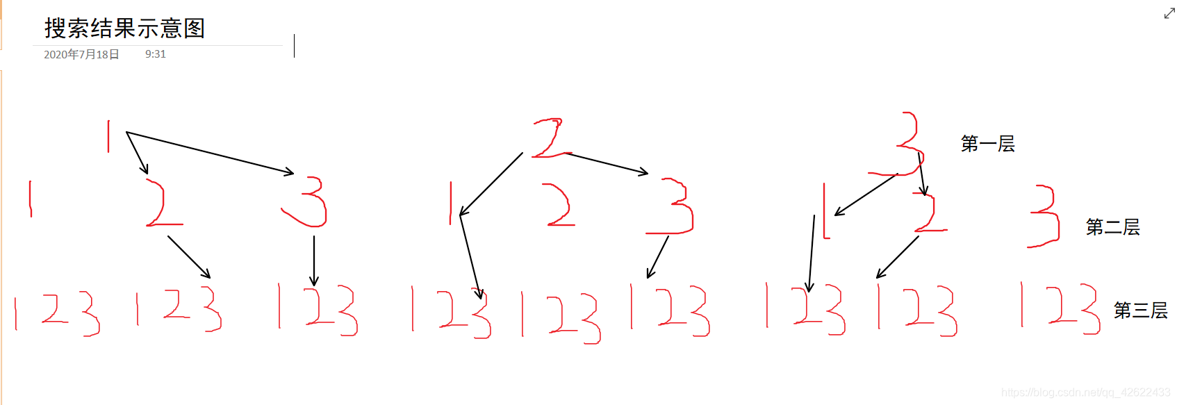 从图中我们可以看到,如果要用深度优先搜索来解决这个问题,当遇到相同的元素时应当避开(题目要求所产生的任一数字序列中不允许出现重复数字。)