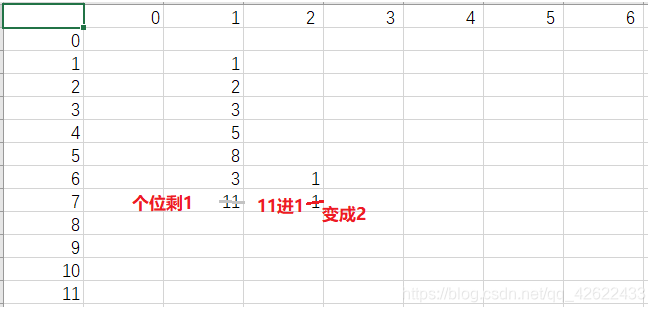 当求和后超过10时进位,将其十位给右面的元素,个位赋值给自己,进位的同时让len++,表示目前有2位数。