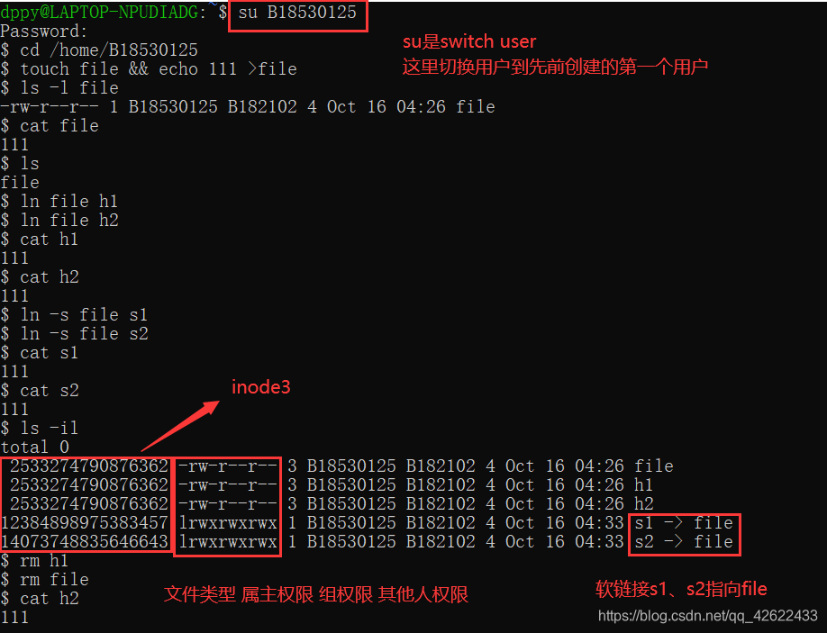 PS:上面这个图里ls -il展示的第一个属性是inode节点号,不小心多加了个3