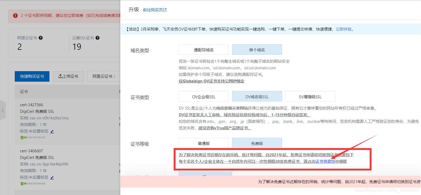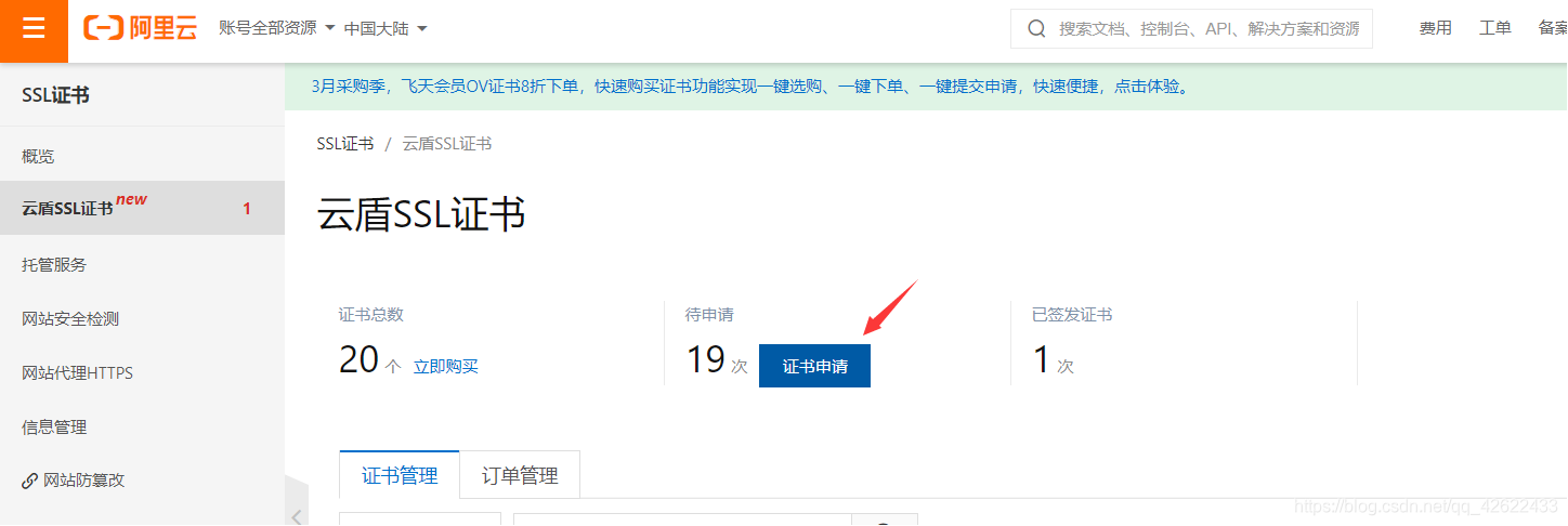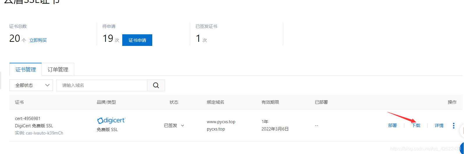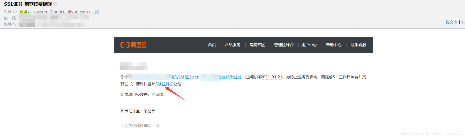 今天发现我的SSL证书快到期了,根据提示到SSL控制台。