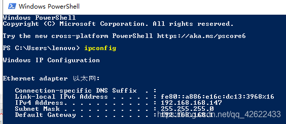 我要攻击我的主机,就先用ipconfig查询到本机ip