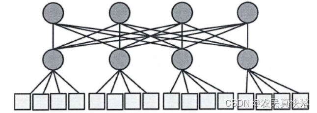 该结构类似于数据结构中的树结构,IP为叶子节点,路由器节点作为父节点,在父节点之上可以在增加父节点,层层相扣。降低了设计难度,也降低了物理设计的复杂度。