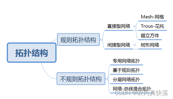 不规则拓扑包括:专用网络、分层网络、网络-总线混合拓扑、基于规则拓扑组合而成的拓扑结构。