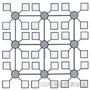 在 N×N 的2D Mesh中,每个节点与相邻的节点连接(边界节点除外)。该结构具有结构简单,易于实现,可扩展性好等优点,较为广泛使用。