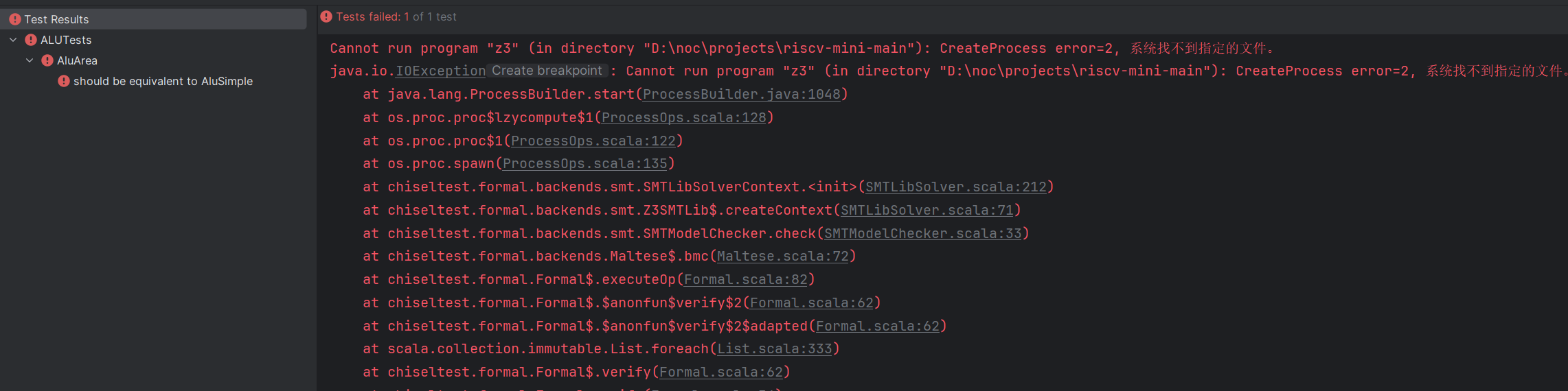 下载risc-mini项目,sbt构建完成后,运行ALUTest.scala下的ALUArea测试,结果出现报错:
