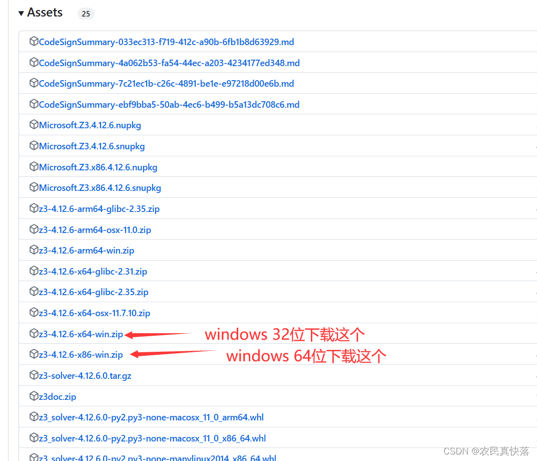 这里下载z3,我的环境是windows64位系统,所以下载了z3-4.12.6-x64-win.zip,如图所示: