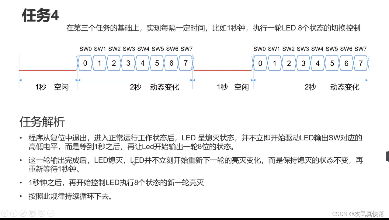 在任务(四)中我们需要在每次动态变化前加入1秒的空闲时间(空闲时间led是熄灭的)